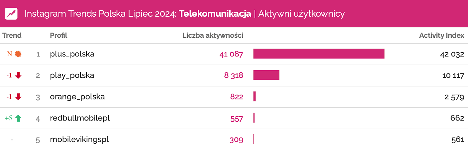 Profil Plus Polska, kolejna nowość w naszym raporcie, okazał się najszybciej rosnącym w kategorii Telekomunikacja, zajmując 4. miejsce w rankingu obserwujących i uplasował się na pozycji lidera pod względem zaangażowania.