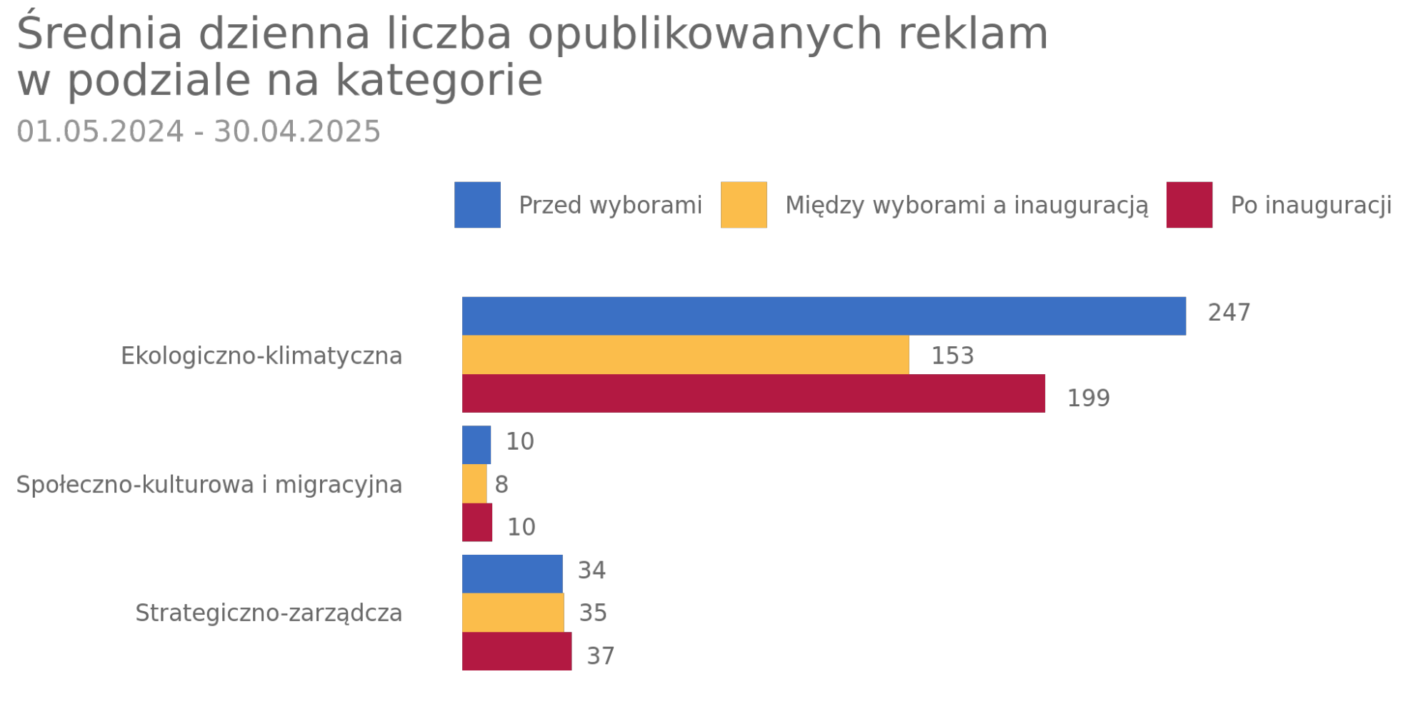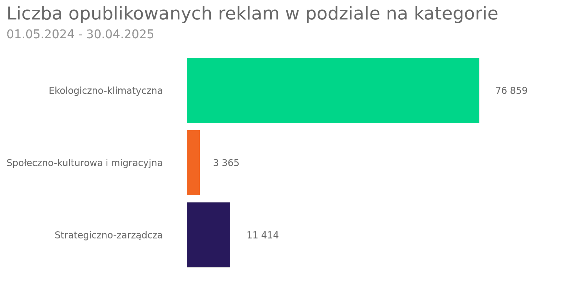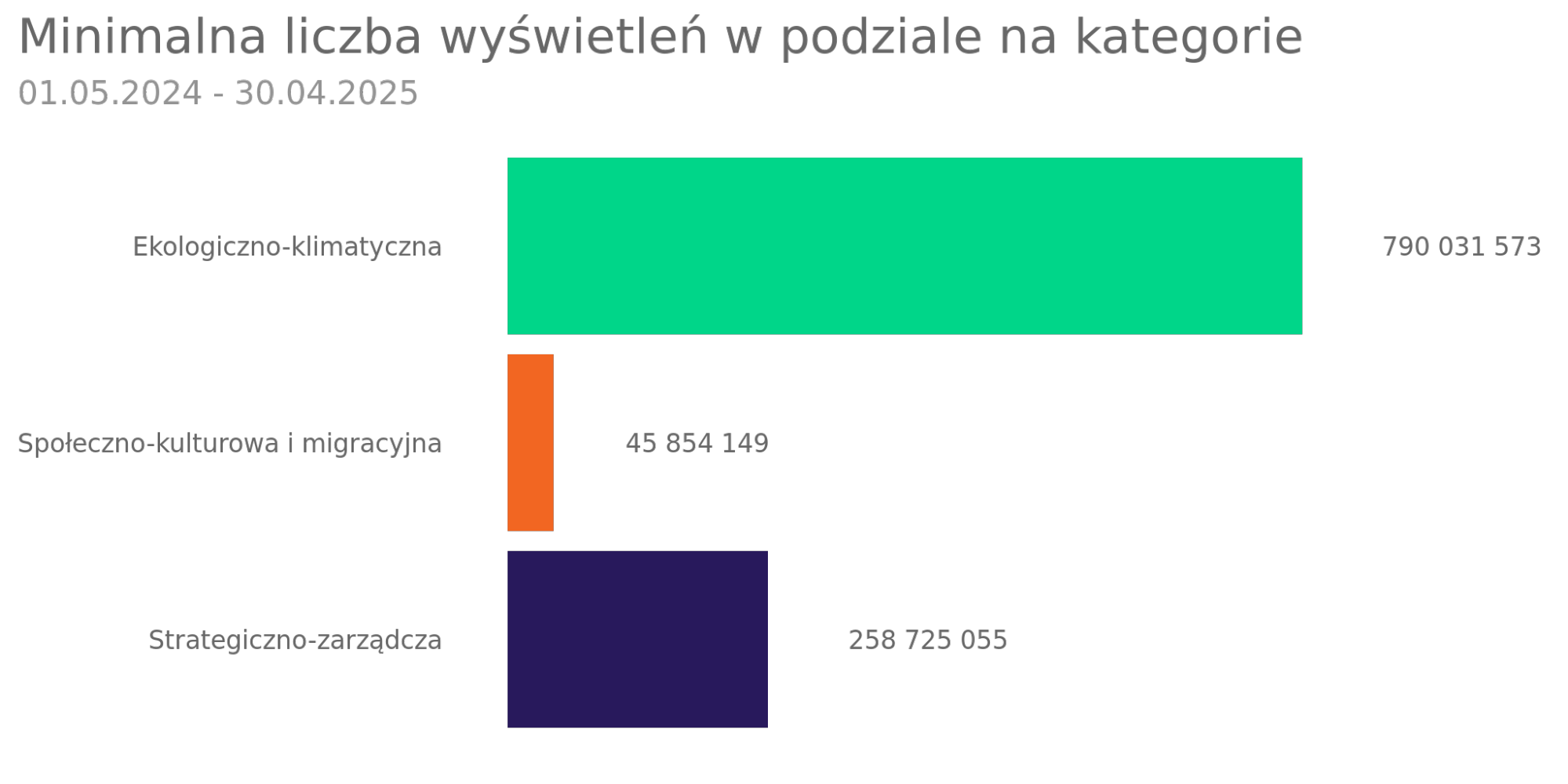 Reklamy dotyczące ekologii i klimatu wygenerowały około 800 milionów wyświetleń, strategiczno-zarządcze ponad 250 milionów, a społeczno-kulturowe 45 milionów.