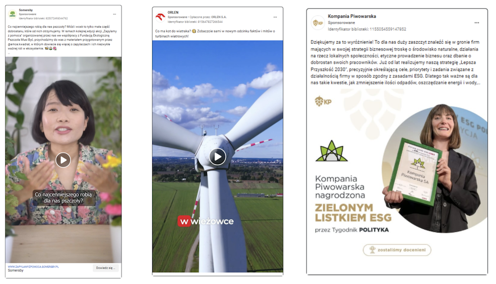 Dla przykładu, reklamy Somersby zawierały odwołania do pszczół, Orlenu do wiatraków, a Kampanii Piwowarskiej do otrzymanej nagrody z obszaru ESG właśnie.