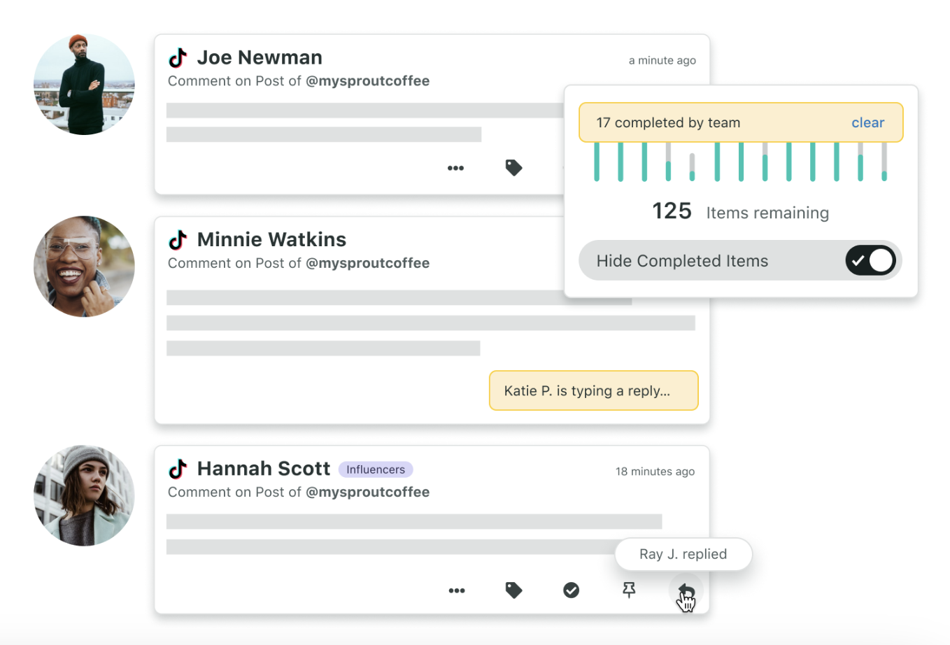 Sprout Social to narzędzie do social media managementu. Z jego poziomu nie tylko przeanalizujesz więc prowadzone działania, ale również zaplanujesz je i zoptymalizujesz (np. pod kątem najlepszego czasu publikacji). Aplikacja posiada także moduł moderacyjny, służący do odpowiadania na komentarze i wiadomości użytkowników na kanałach social media, w tym na TikToku.