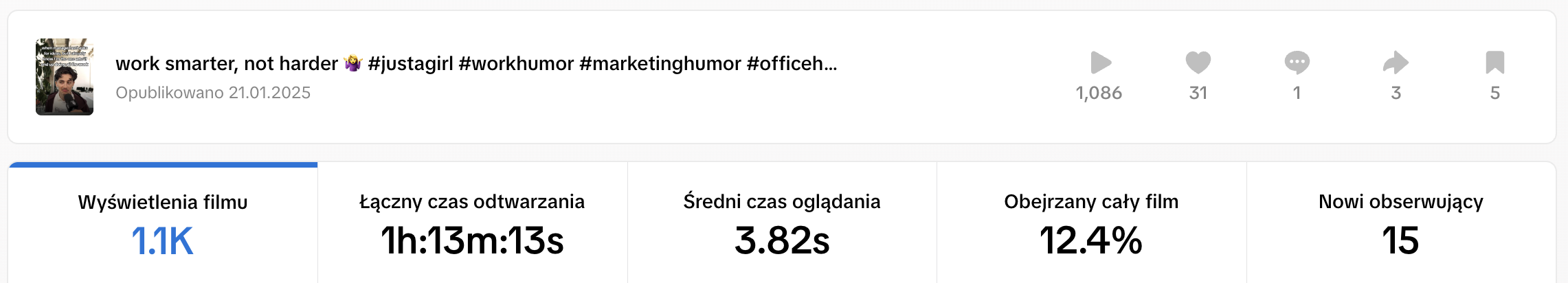 Plus? Natywne narzędzia analityczne TikToka są oczywiście darmowe i zapewniają całkiem dużo danych.